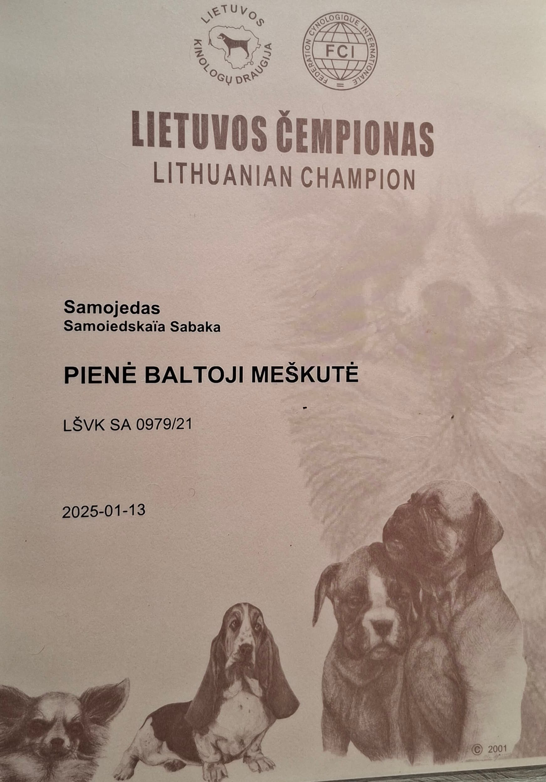 Veislynas Baltoji Meškutė įregistruotas . Veislynas įregistruotas FCI(FCI./NO-36/20) Veislynui priklauso abu samojedai -mama ir tėtis.Be jų veislyne dar gyvena ir šių mažylių močiutė(Pienės mama) . Sulaukėme naujos, kilmingų šuniukų vados! Visi veislyne gimę mažyliai,tik su FCI/LKD kilmės dokumentais. Šeimininkų laukia trys samojedukės (2025.10.22gimimo) . Jos paskiepintos antru skiepu. Taip pat jau įsigaliojęs skiepas nuo pasiutligės. Taip kad jos gali vykti ir į kitas ES šalis. Mažylių mama Pienė Baltoji Meškutė Tel: