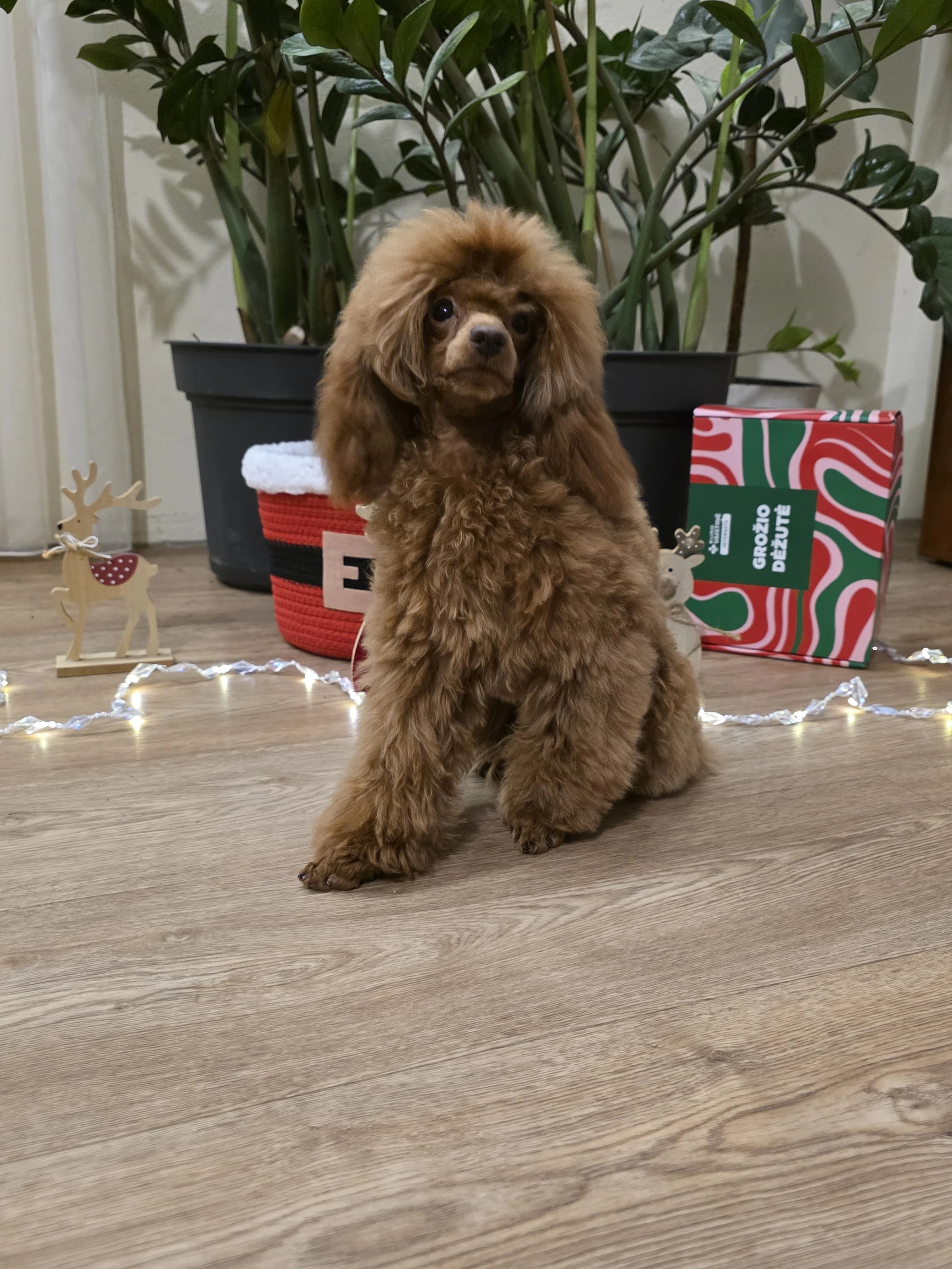 Red toy female. FCI/LKD pedigree. Very nice toy girl, for sweet home. Not for show/breeding. Info .